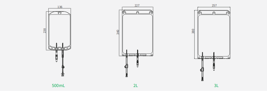 | 目錄號 | 容量 | 管路規格&尺寸 | 滅菌 | 包裝方式 | |||